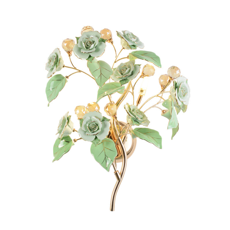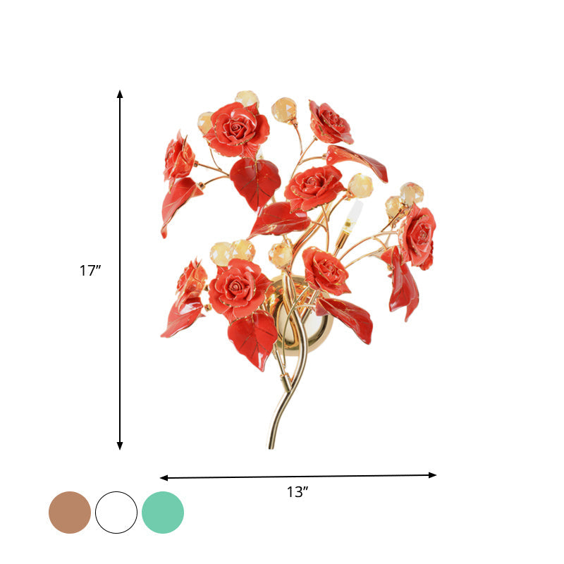 Modern Faceted Crystal Flower Sconce - Wall Mounted Bedroom Light Fixture with 3 Bulbs - White/Red/Green Color Options