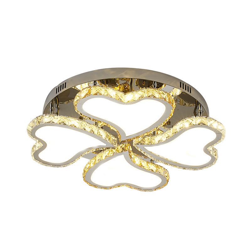 Crystal Heart-Shaped Led Chrome Ceiling Mount Light Fixture