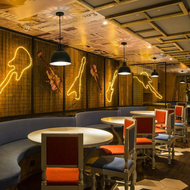 Farmhouse Dome Shade Pendant Light - Adjustable Cord Black Iron Fixture With 1 Bulb Ceiling Hanging
