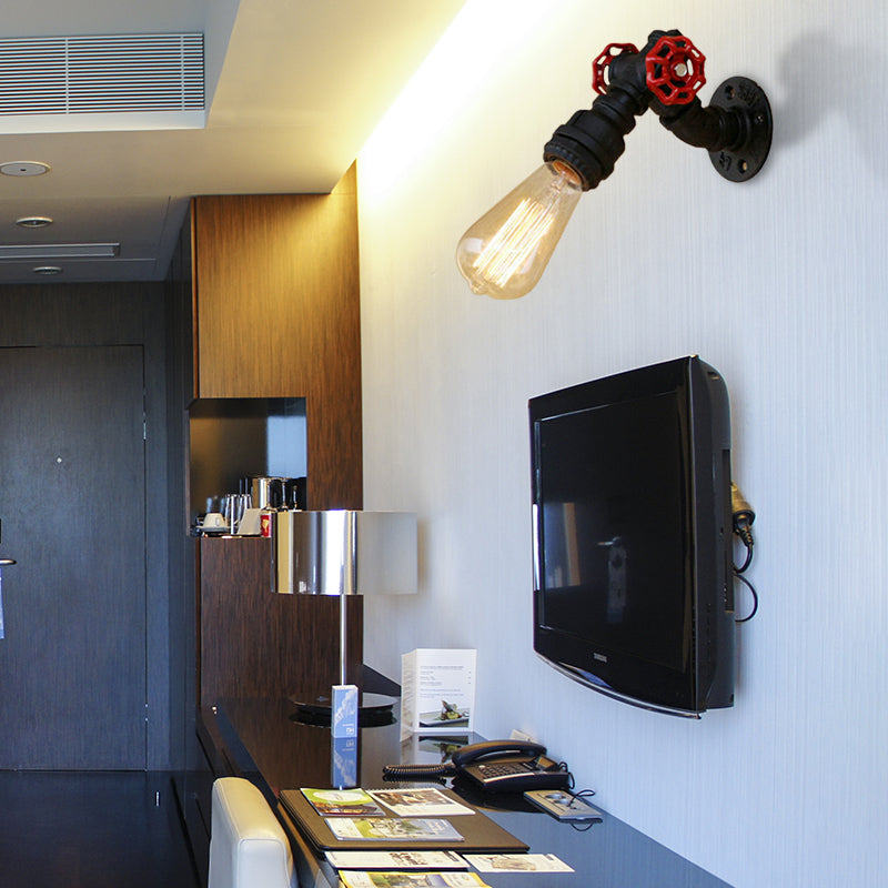 Rustic Wall Lamp with Valve: Stylish 1-Bulb Farmhouse Lighting in Black for Dining Room