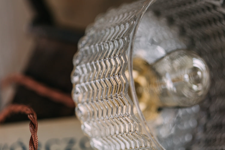 Fish-Bone Glass Hanging Light with Brass Drum Shade - Pendant Lamp for Bedroom & Dining Room