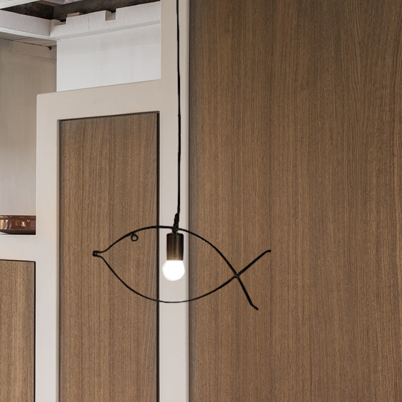 Modern Black Fish-Shaped Metal Pendant Light For Dining Room - 1-Light Ceiling Fixture