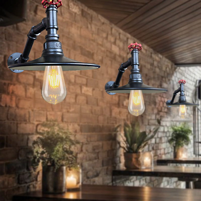 Antiqued Iron Wall Sconce: Flat Living Room Lamp Fixture, Single Head, Black/Copper Mounted Light with Valve Deco