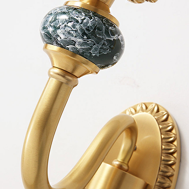 Antique Gold Wall Lamp with Clear Glass - Floral Bedroom Sconce Light Fixture