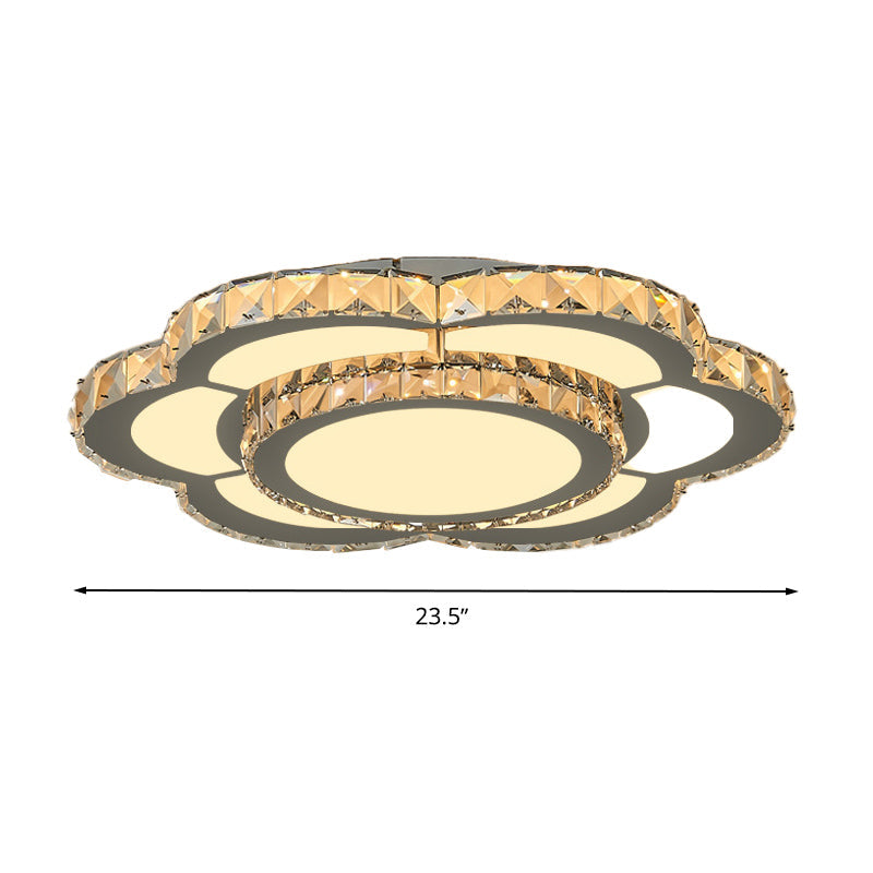 Contemporary Crystal Flush Mount Lamp: Floral Living Room Led Light Fixture In Warm/White -