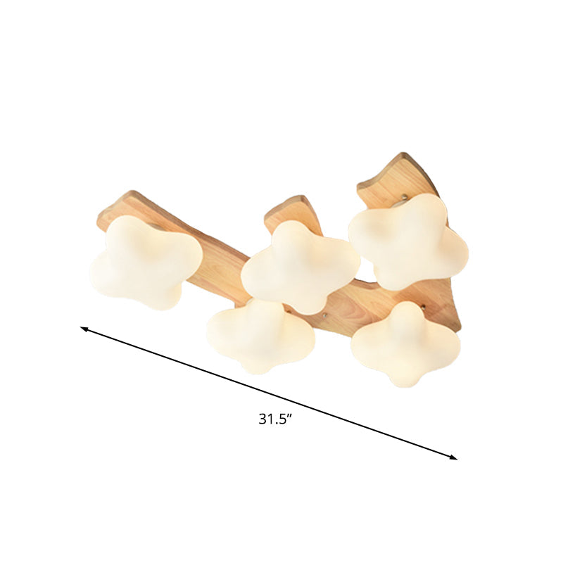Plum Blossom Ceiling Lamp With Frosted Glass And Led Lighting 5 / Wood
