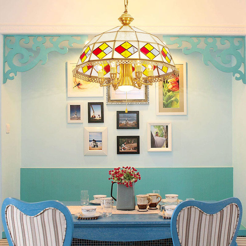 Frosted Glass Red Chandelier Pendant - 7-Light Colonial Down Lighting Lamp