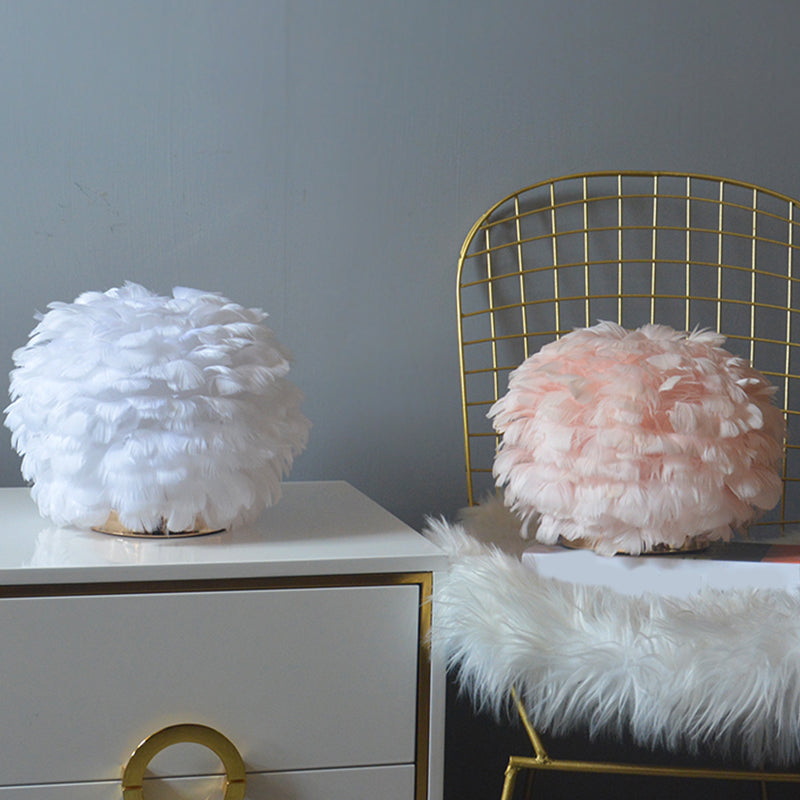 Contemporary Global Bedroom Reading Light: Feather 1 Bulb Night Lamp (White/Pink) Pink
