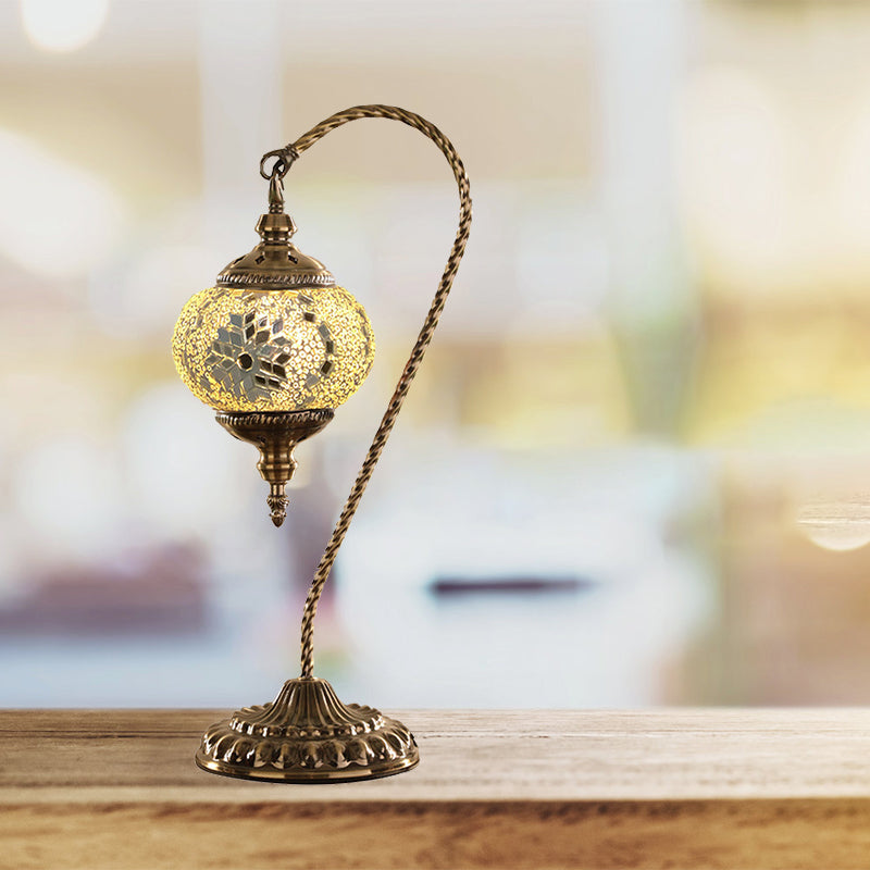 Traditional Red/White/Yellow Glass Table Lamp For Coffee Shop Nights - Global Design With Metal Base