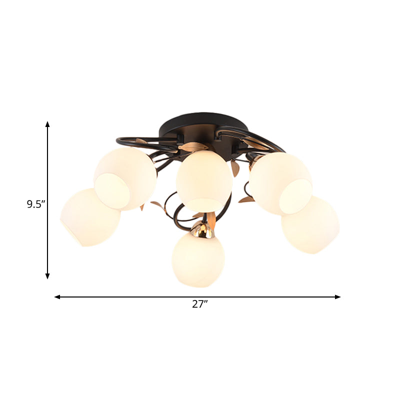 Traditional Globe White Glass Semi Flush Light with 4/6/9 Mounted Lights for Living Room Ceiling – Black Fixture