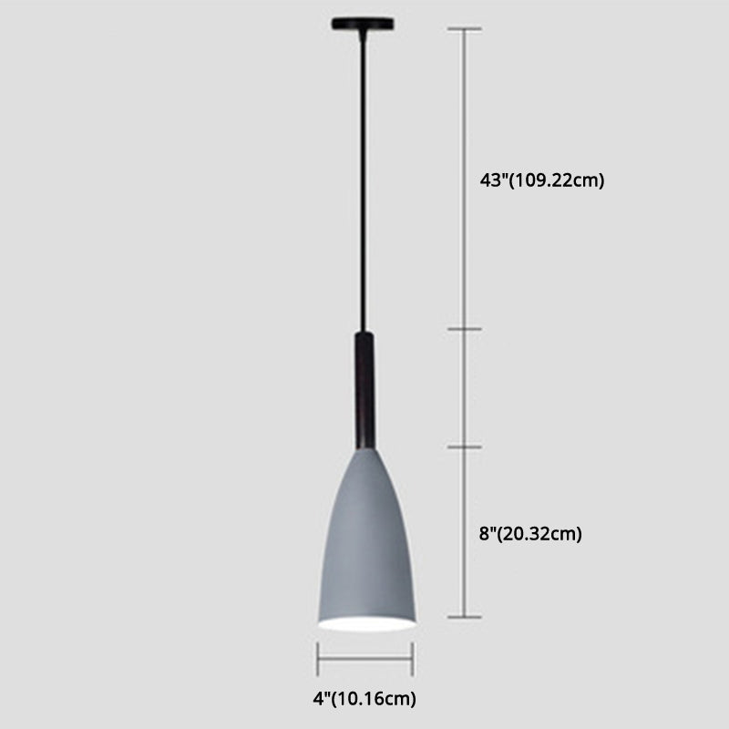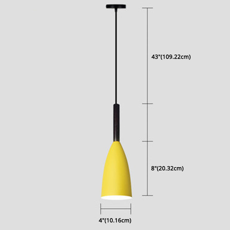 This Goblet Shaped Down Lighting Pendant Lamp Macaroon Metal Single Light Hanging Light is a stylish and modern product for your dining room. It features a unique and eye-catching teardrop-shaped fixture that measures 5 to 9 inches in size and 4 inches in length, with a dramatic 57-inch fixture height and 43-inch chain/cord length. Additionally, the shade of the fixture is 8 inches tall and made of iron, making it a great choice for providing ambient lighting in your home. The lamp also comes available in a variety of colors, including yellow, green, grey, white and black. It is powered by 1 light, with no bulbs included, and has a round metal canopy with a 4-inch width. It is compatible with 110V-120V and 220V-240V and has a bulb base of E26/E27, allowing you to choose between LED, incandescent or fluorescent light types. Additionally, this product has a modern style and is suitable for use in kitchens. All in all, this Goblet Shaped Down Lighting Pendant Lamp Macaroon Metal Single Light Hanging Light is perfect for adding a contemporary flair to your living or dining area. It will not only provide abundant light but also be an eye-catching addition to any space.