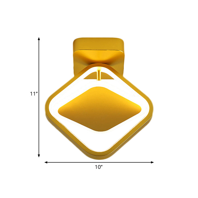 Modern Rhombus Frame LED Flushmount Light with Gold Finish & White/Warm Light