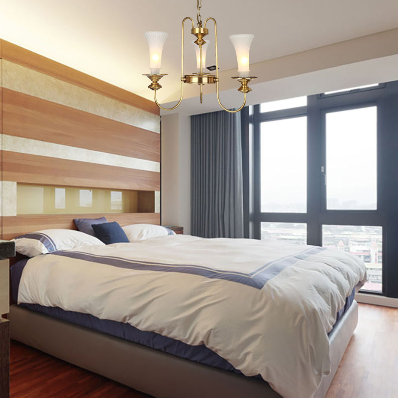 Colonial White Glass Floral Chandelier Light With Gold Accent - 3/6/8 Head Living Room Hanging Lamp