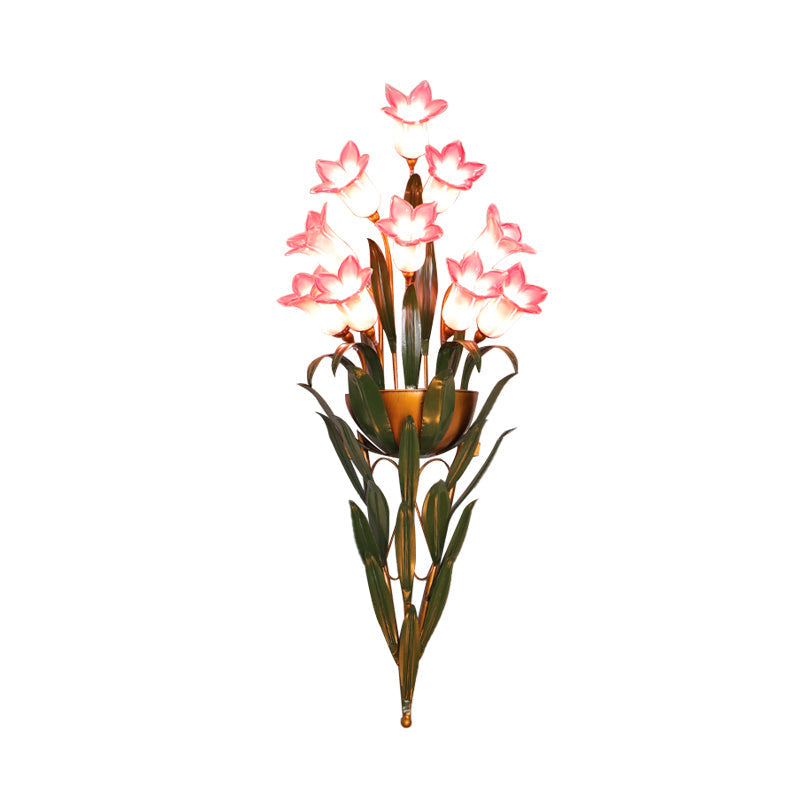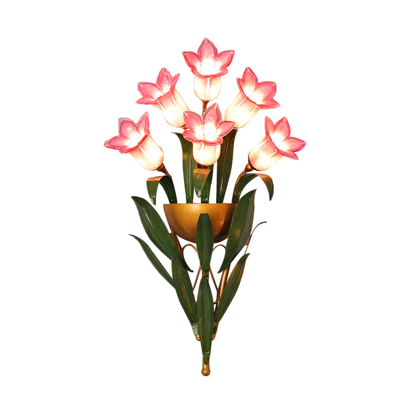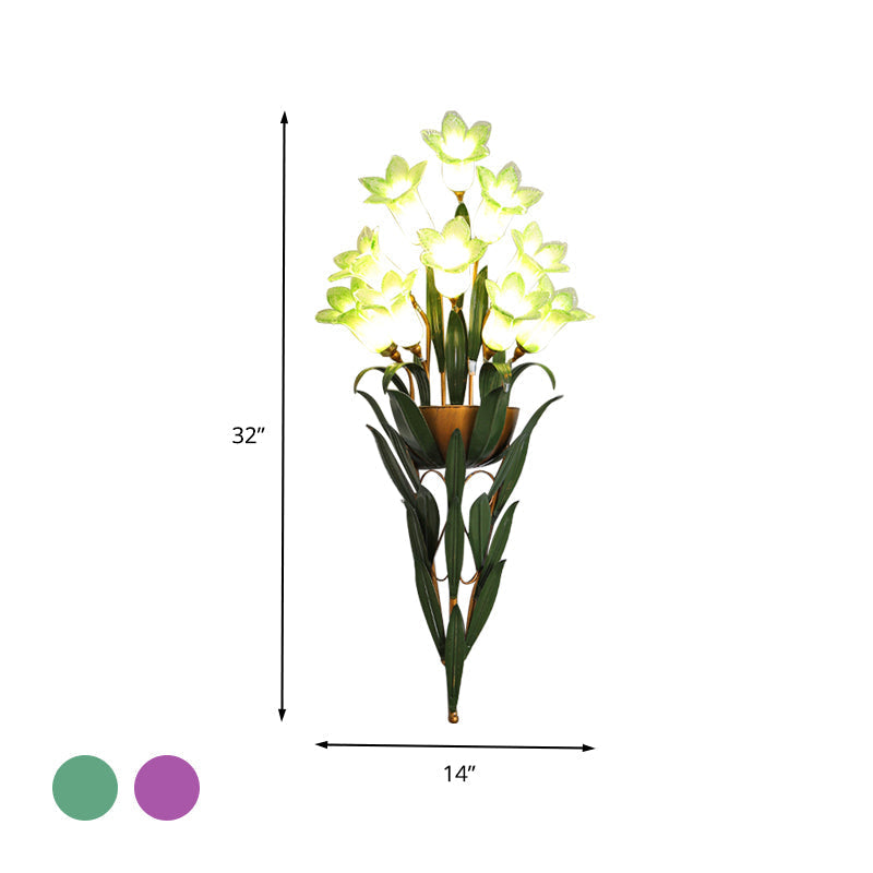 Green and Purple Glass Sconce with Leaf Deco - Wall Light Fixture for Bedroom (6/10 Lights)