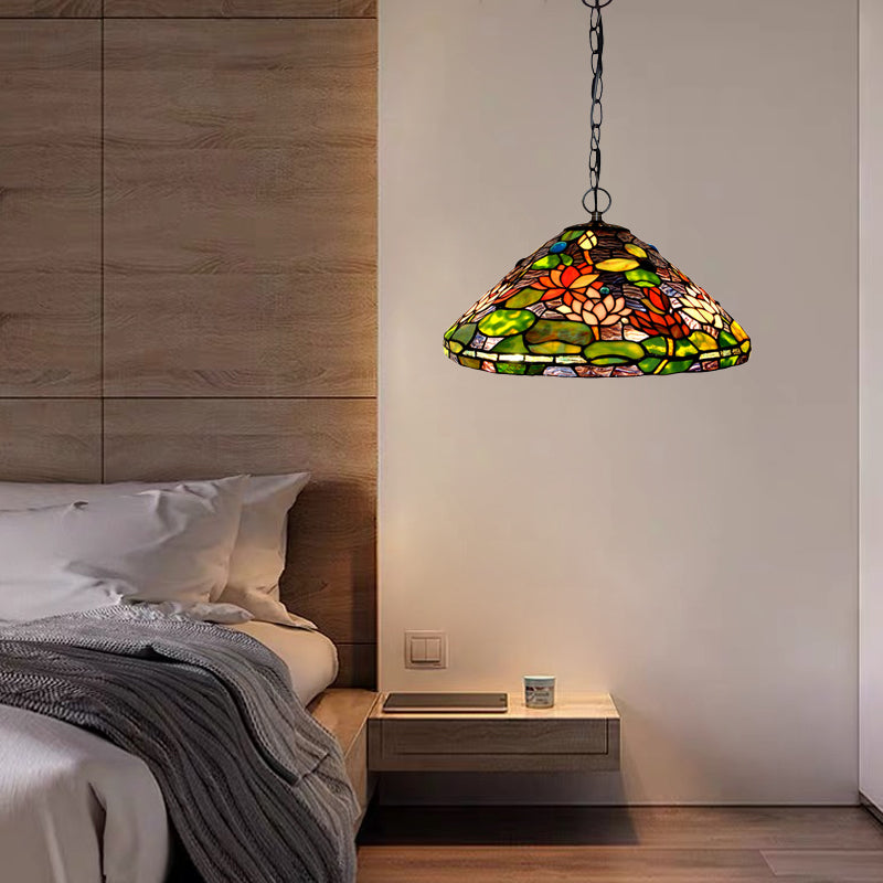 Victorian Stained Glass Chandelier - Green Blossom Pendant with 2 Lights