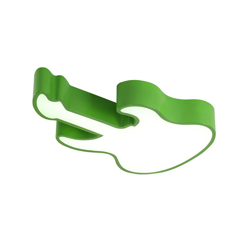 Kids Acrylic Guitar Flush Ceiling Light - Led Mount Fixture For Classrooms Green / White