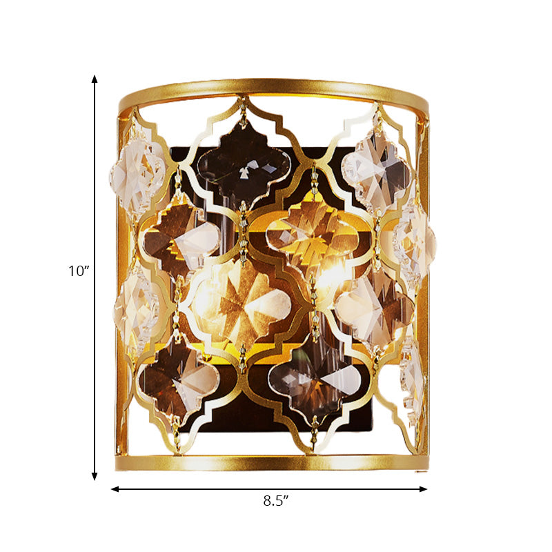Vintage Stylish Brass Wall Mounted Lamp with Clear Crystal Accent - Half-Cylinder Wall Lighting, 2 Lights