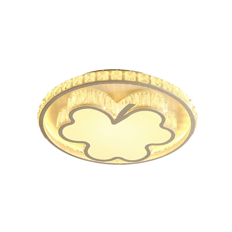 This stunning Halo Bedroom Ceiling Flush Simple Beveled Crystal LED White Flush Mount with Clover Design is an eye-catching addition to any living space. This modern lighting fixture features an elegant clover design with bevelled crystal that adorns the housing, complete with a white finish. Ideal for bedrooms, this luxury piece boasts an impressive size of 19 to 20 inches and is perfect for low ceiling heights. The fixture width measures 19.5 inches while the fixture height is 3 inches.