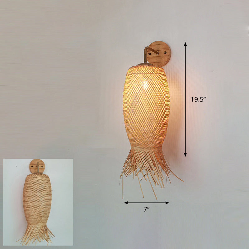 Bamboo Single-Bulb Wall Mounted Lamp: Handcrafted Corridor Light Fixture in Contemporary Wood Design
