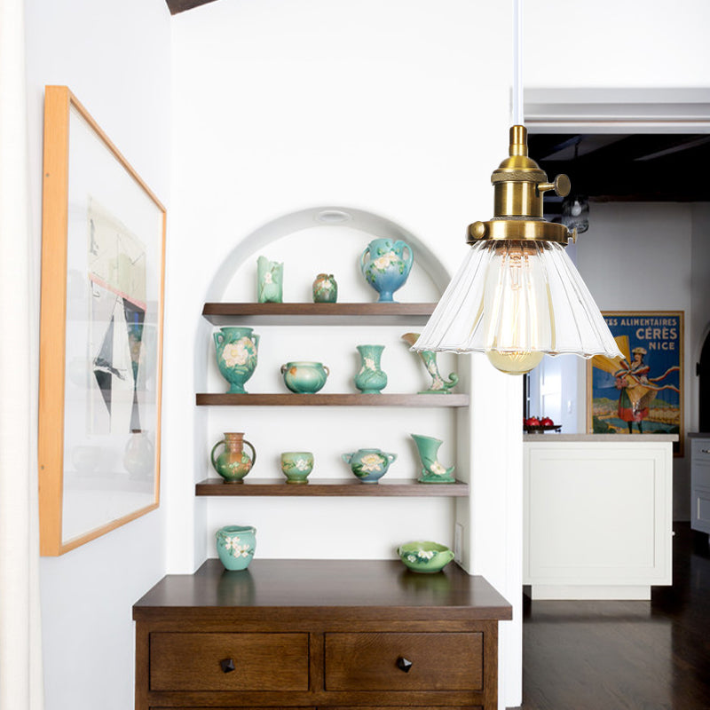 Height-Adjustable 1-Light Industrial Conic Pendant Lamp with Amber/Clear Glass for Coffee Shops - Available in Black, Bronze, and Brass