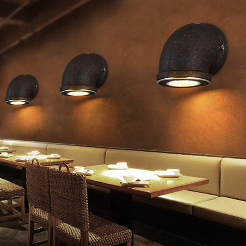 Iron Black Finish Industrial 1-Bulb Wall Sconce - Water Pipe/Cage/Fist Design / E