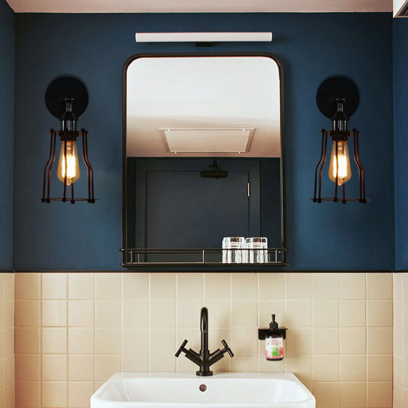 Iron Caged Wall Light Retro Style 1 Head Lighting In Black For Living Room