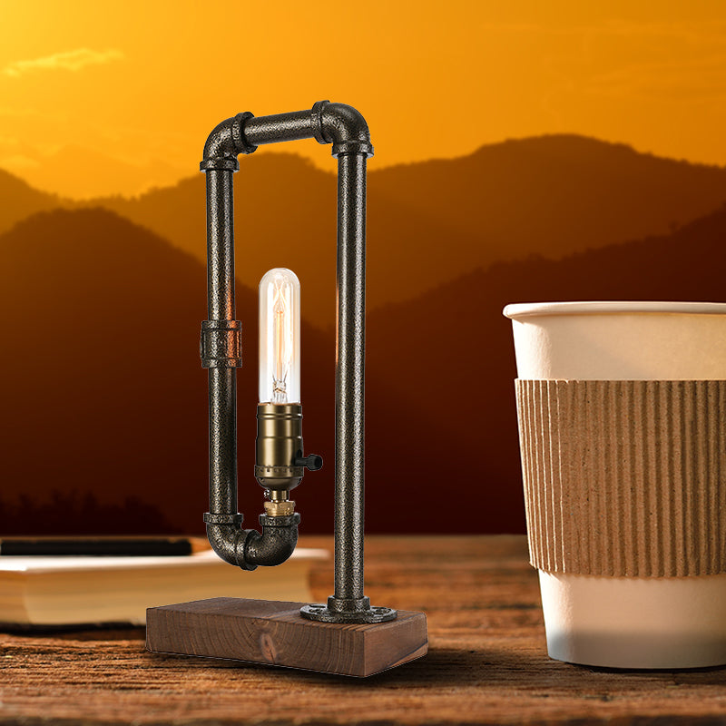 This product, the "Iron Rectangle Piped Table Lighting Vintage Industrial 1 Head Bedroom Antique Brass Table Lamp with Wooden Base", is a floor lamp that would look perfect in any room, whether it is your bedroom, living room, or office! The lamp is made of high-quality materials, including a wooden base and an antique brass finish. The dimensions of the product are 9 inches by 7 inches, and the height is 16 to 20 inches. The lamp also includes a backplate width of 7 inches. The light type is an LED, making it perfect for any room in your home.