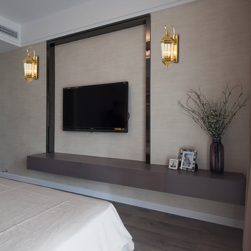 Traditional Gold Outdoor Lantern Wall Sconce - Metal 1-Bulb Wall Light Fixture