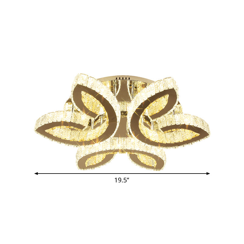 Modern Leaf Bedroom LED Flush Fixture with Clear Crystals and Stainless Steel
