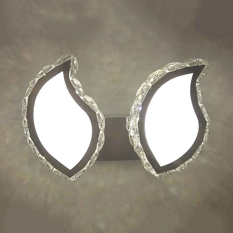 Modern Chrome Wall Sconce with Clear Crystal LED for Leaf Bedroom