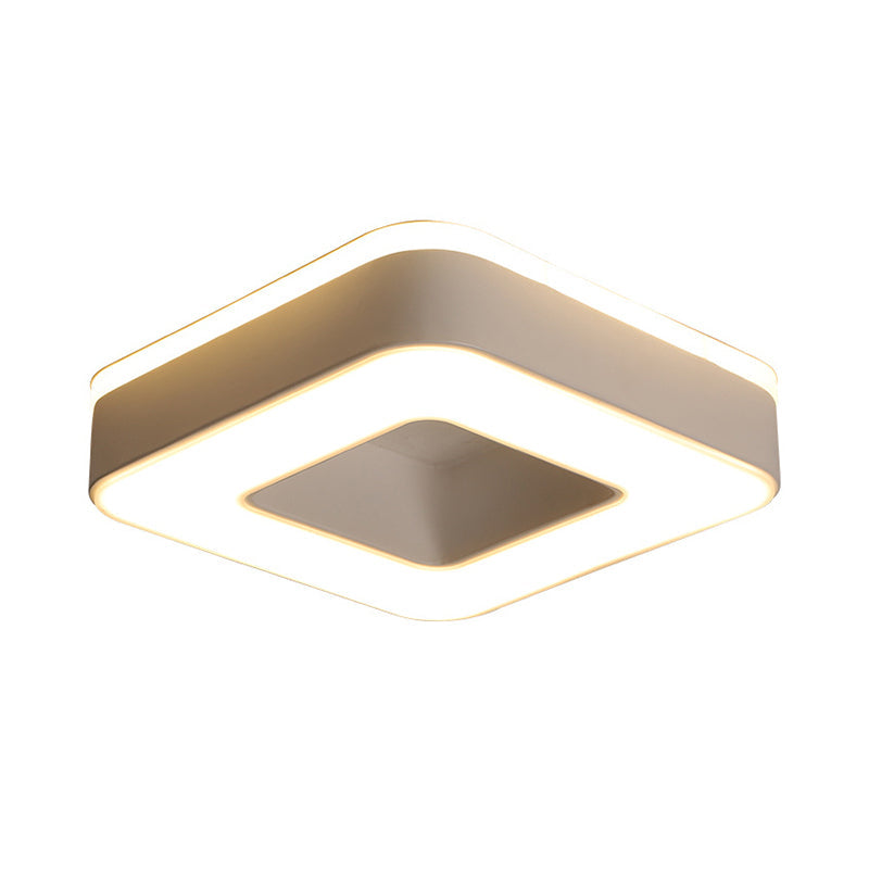 Sleek LED Corridor Ceiling Light with Simple Black/White Flush Mount & Small Square/Round Acrylic Frame, Warm/White Light