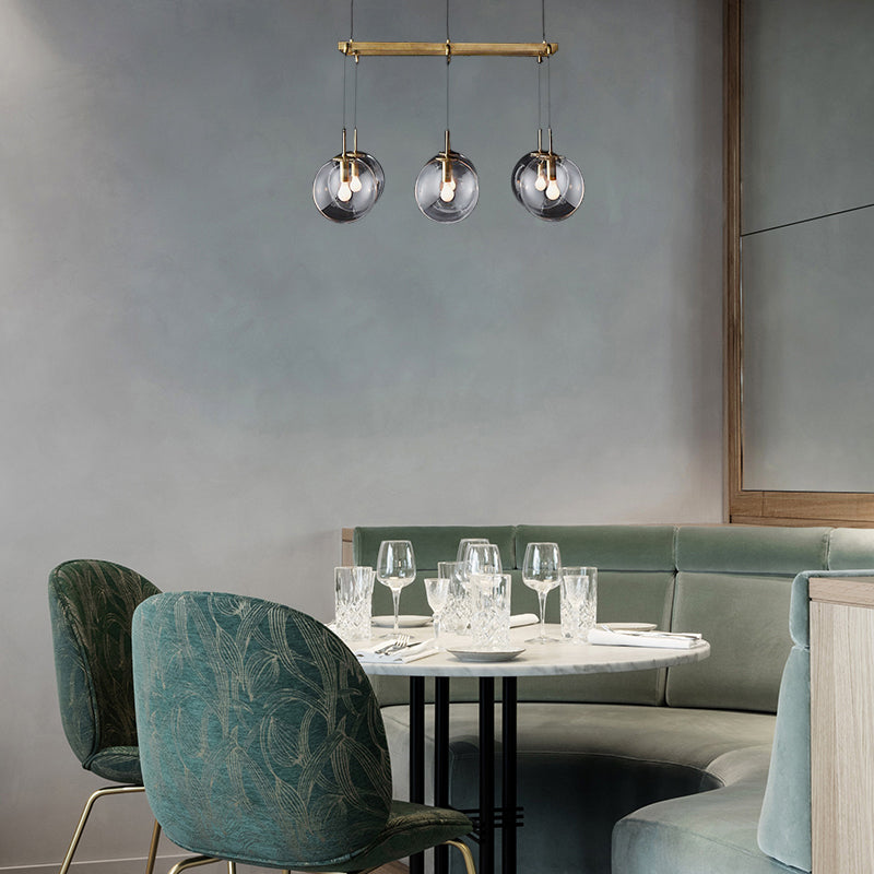 Industrial Smoke Glass Island Lighting 6/8/10-Light Nickel/Bronze LED Pendant Fixture