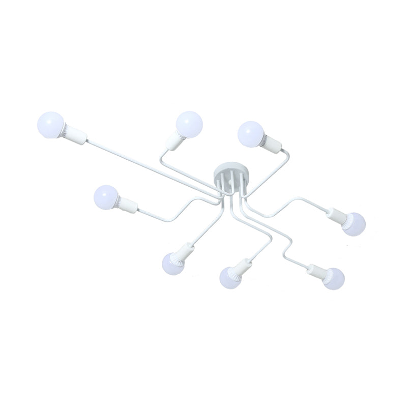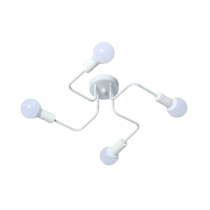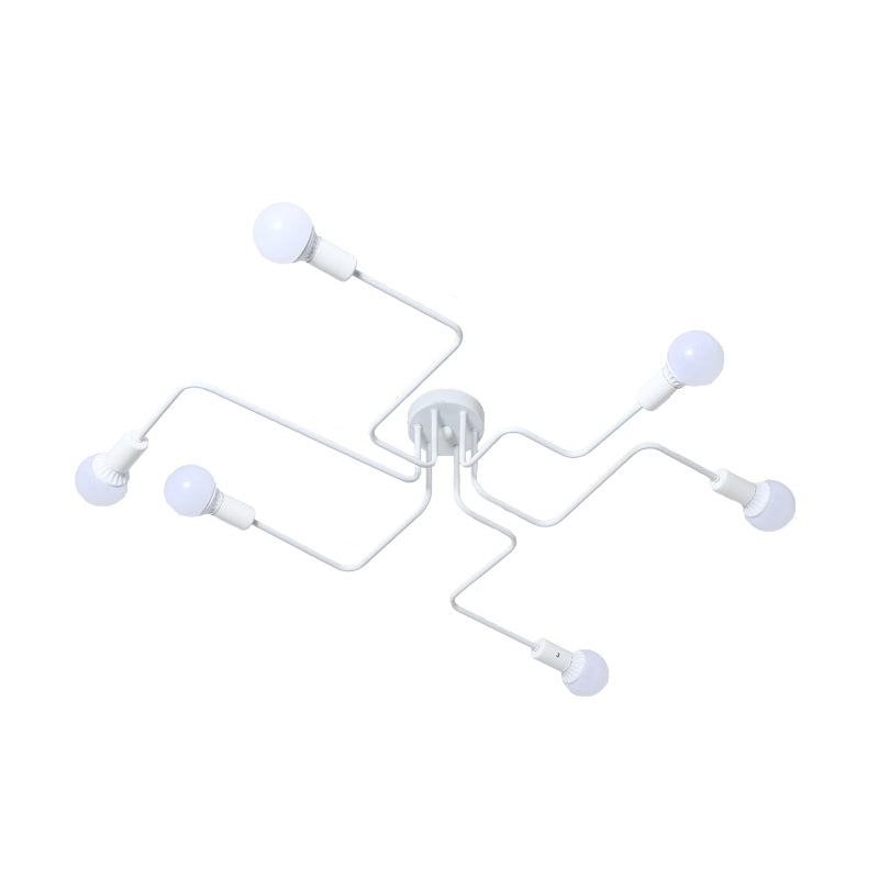 Loft Industrial Exposed Semi Flush Light Fixture - 4/6-Head Metallic Ceiling Light in Black/White for Living Room