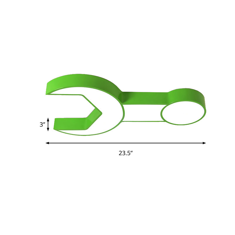 Wrench Shape Ceiling Mount Light: Charming Acrylic Fixture For Kindergarten Bedroom Green