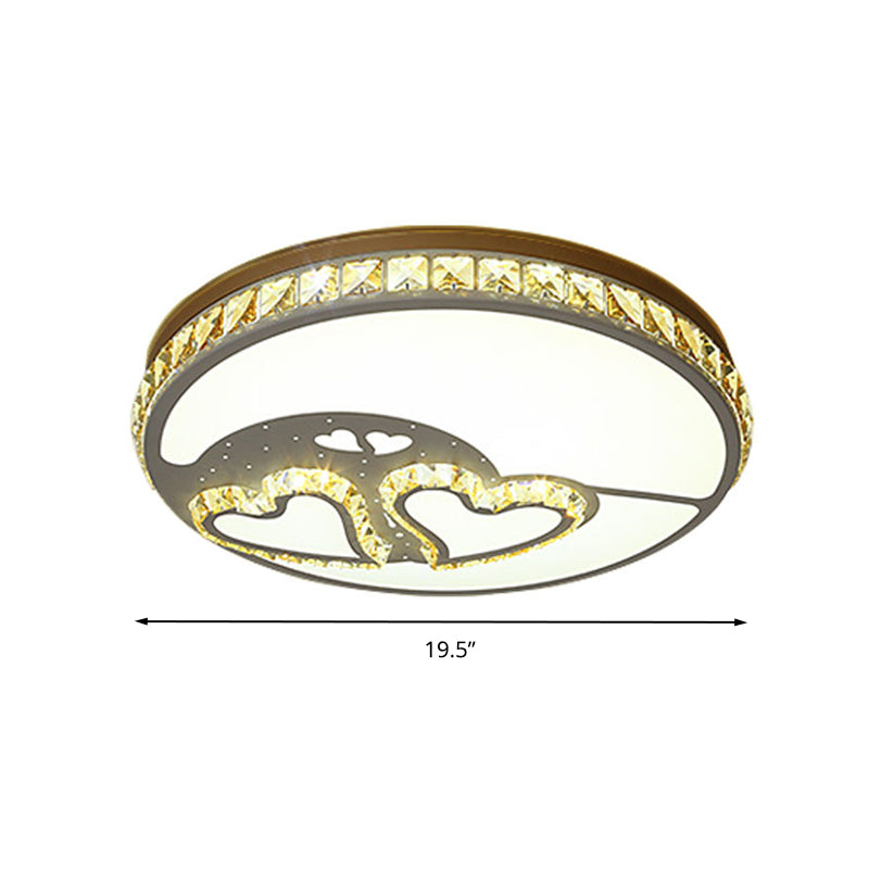 Heart Crystal Flush Mount Led Ceiling Lamp - Modern Bedroom Fixture In White