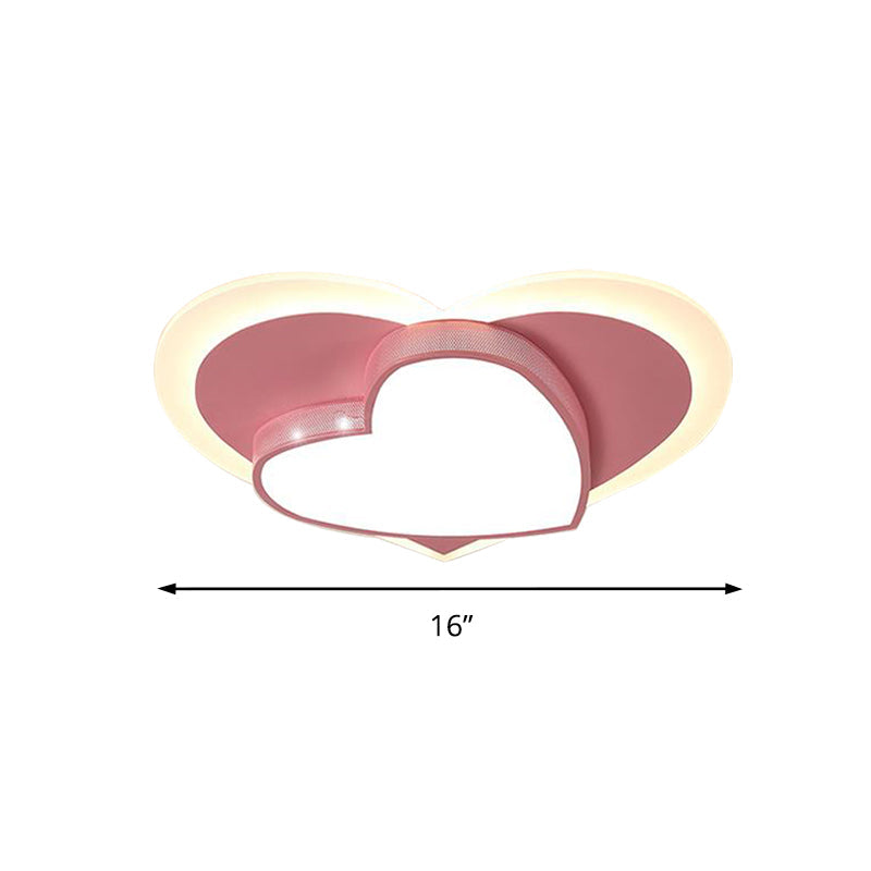 Adorable Pink Heart Led Ceiling Lamp For Girls Bedroom - Acrylic & Metal Construction / 16