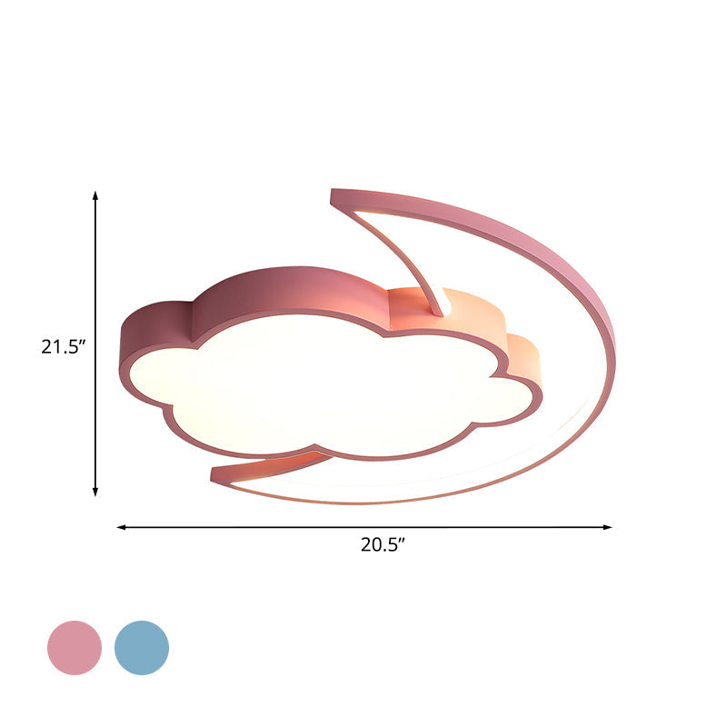Kid's LED Moon and Cloud Flushmount Ceiling Light in Blue/Pink