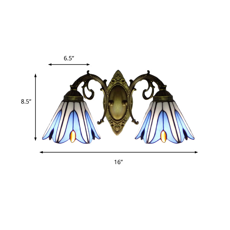 This beautiful piece of art is a wall mount light of rustic loft stained glass 2 head wall lighting. This piece is an exquisite example of classic craftsmanship, constructed with the best quality materials to ensure that it can remain in perfect condition for many years. This wall light is carefully designed with size ranging from 15 to 19 inch, a shade material of glass, voltage of 220V-240V 110V-120V, number of lights with 2, fixture type of wall lamp, light type options of LED/Incandescent/Fluorescent, power source of Direct Wired Electric, colour of blue, feature of medium base, fixture height of 9 inch & under, height of 8.5", shade width of 6.5", fixture width 16", and bulb base of E26/E27. Perfect for living rooms, this wall mount light is a simple, yet stylish addition to any home. Its classic tiffany style of stained glass works beautifully in harmony with its warm colour to bring a touch of vintage charm to your space.