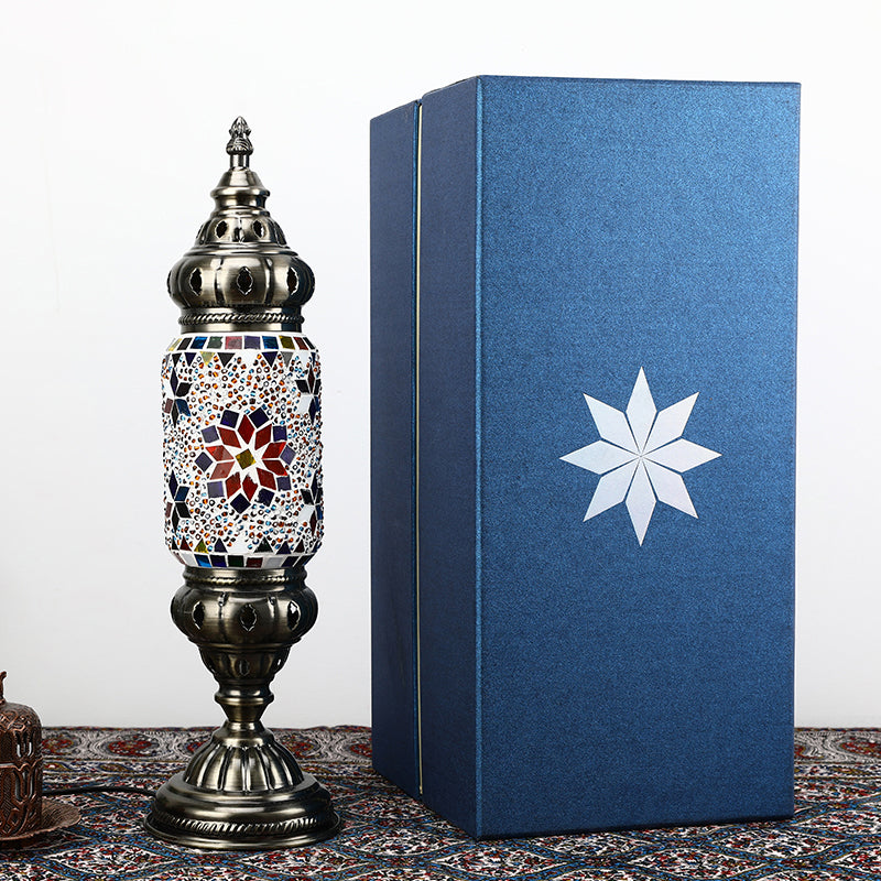 Mosaic Glass Night Light with Mediterranean Tubular Design - Nickel Finish for Bedroom