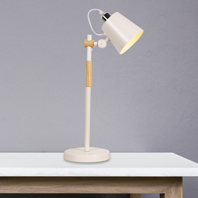 Metal Bucket Industrial Table Light with Wooden Arm - Night Lighting for Living Room (Black/White)