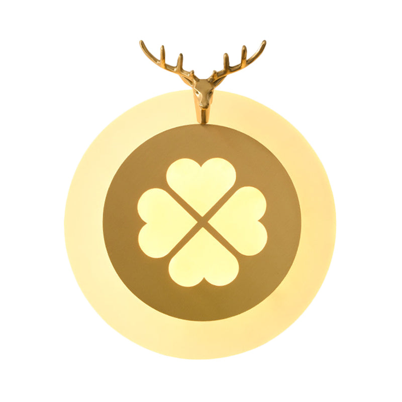 Brass/Black Metal Circle Sconce with Lucky Clover Pattern - LED Wall Light for Tradition Living Room