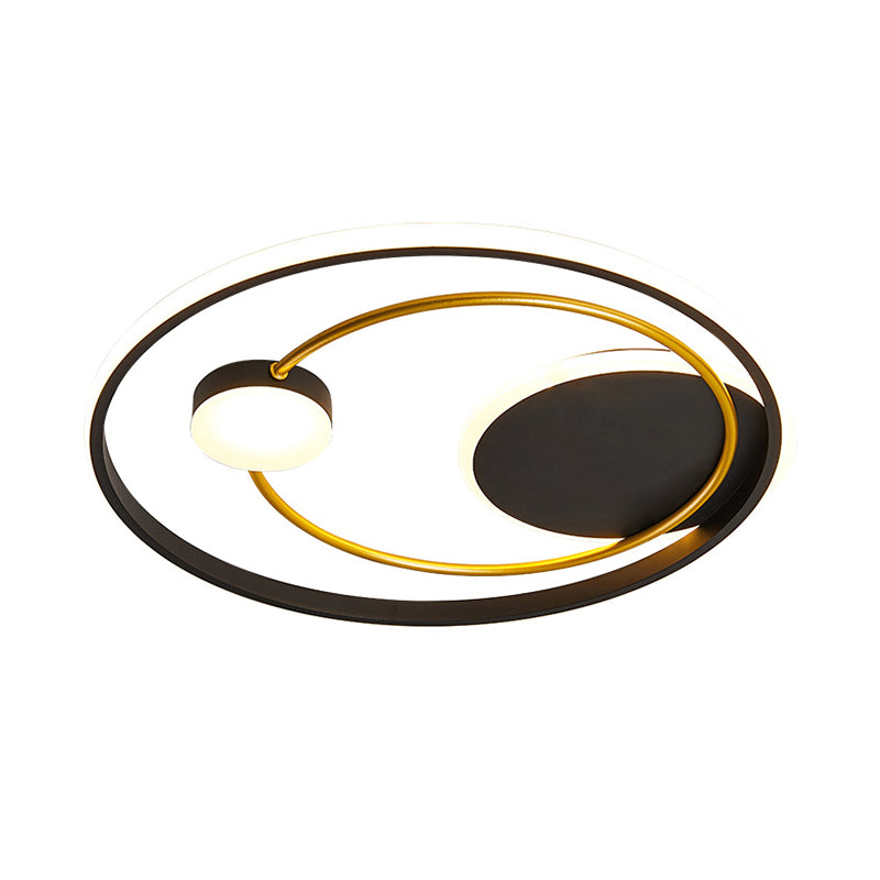 Modern Metal Led Ceiling Light For Bedroom - Circular Flush Mount Fixture Black / 16.5 Third Gear