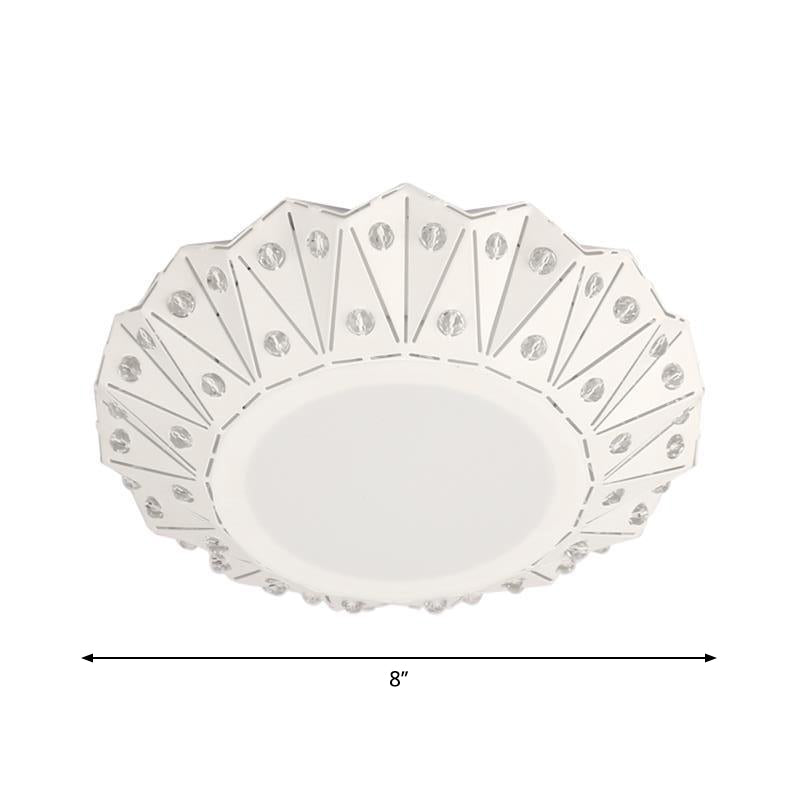 Contemporary LED Ceiling Mounted Flush Light Fixture - Metal Folding Design, White with Crystal Accent
