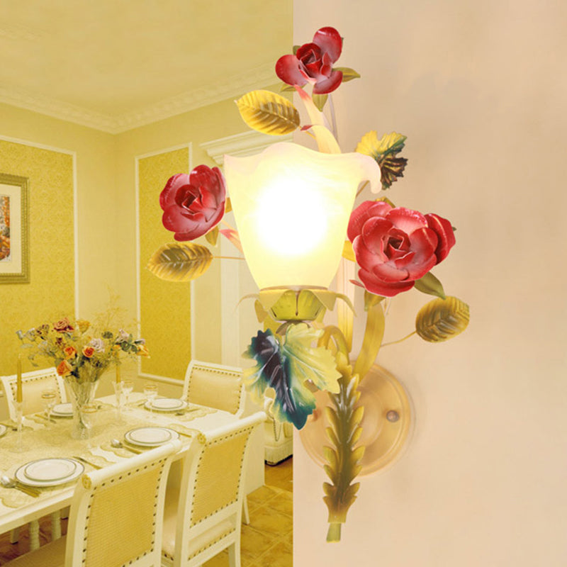 Green Metal Wall Sconce with Blossom Design - Perfect for Bedroom Lighting