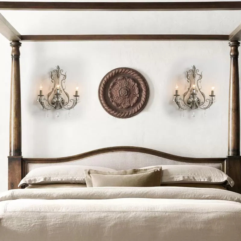 Metallic Candle Wall Sconce with Crystal - 3 Lights - Living Room & Kids Wall Light