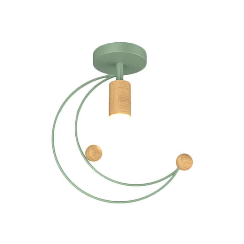 This modern and stylish ceiling light will add a touch of class to any room. The sleek metal crescent shape is accented by a wooden ball decoration, available in black, white, or grey. The light is semi-flush mounted, making it perfect for any room in your home. It requires one E26/E27 bulb (not included) and is compatible with LED, incandescent, or fluorescent bulbs.