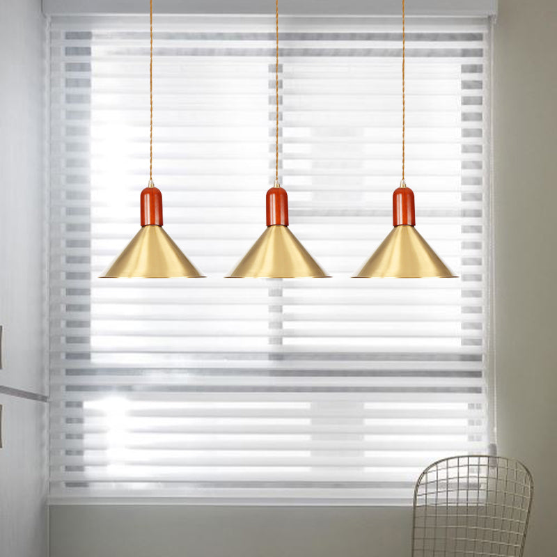 Gold Finish Multi-Light Pendant Conical Ceiling Lamp - Industrial Tandem Hanging 3/5/7 Lights 3 /