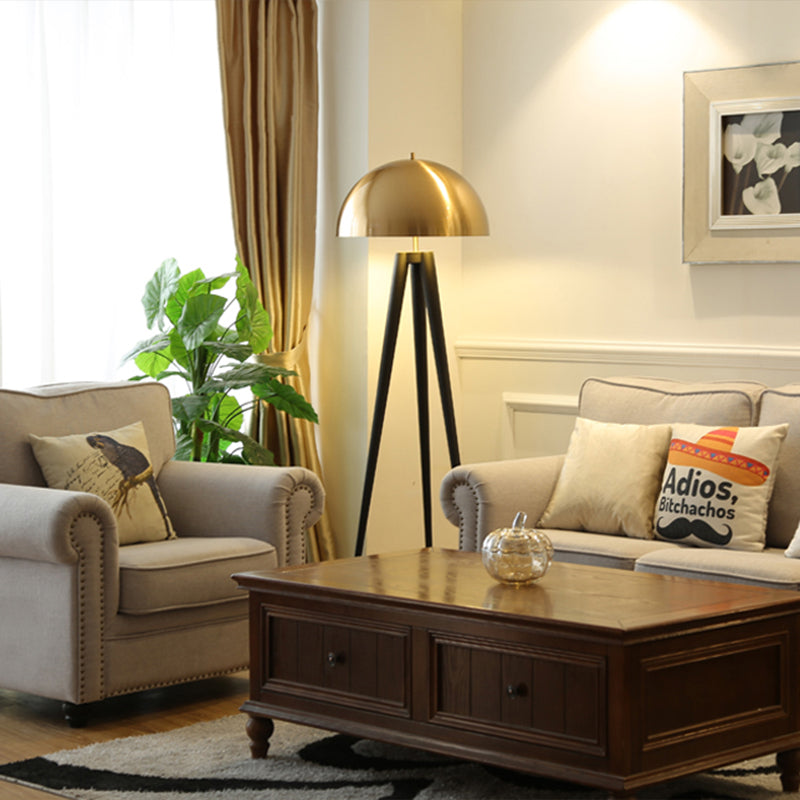 Modern Mid Century Metal Tripod Floor Lamp with Semicircle Stand, Black/Gold Finish