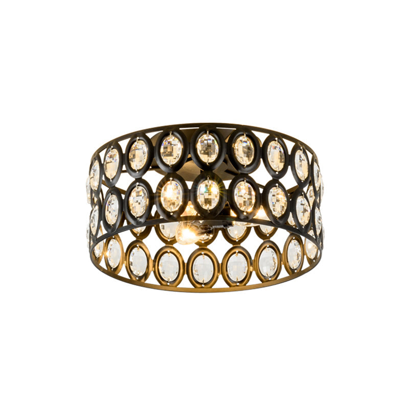 Contemporary 3-Light Metal And Crystal Flush Mount Ceiling Light (Black Cylinder Design)