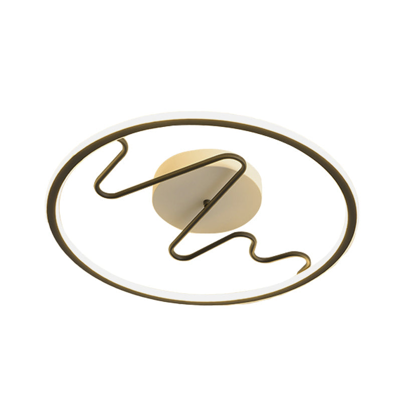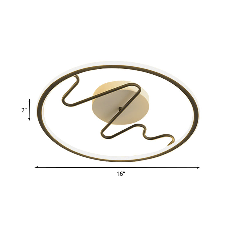 Black Acrylic LED Bedroom Flush Mount Lamp with Modern Ring and Spiral Line Design